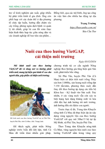 Mô hình nuôi cua theo hướng VietGAP tại xã Phú Tân,