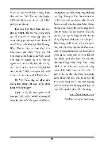 về đất đai của 63/63 đơn vị tỉnh, thành loài tại khu vực Tiểu vùng sông Mekong